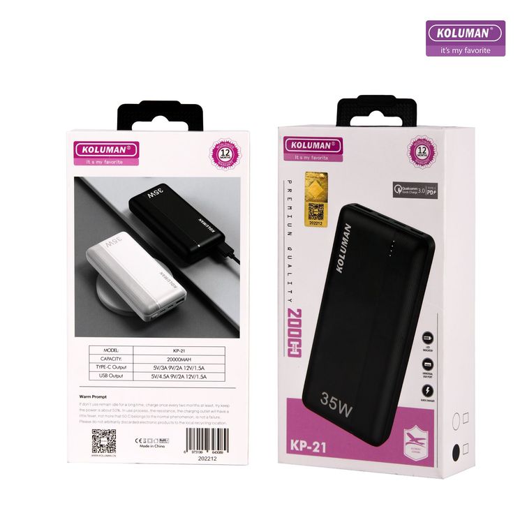 معرفی پاوربانک KP-21 تولید شرکت کلومن از یک باتری لیتیومی با ظرفیت 20000 میلی آمپر ساعت بهره می‌برد.